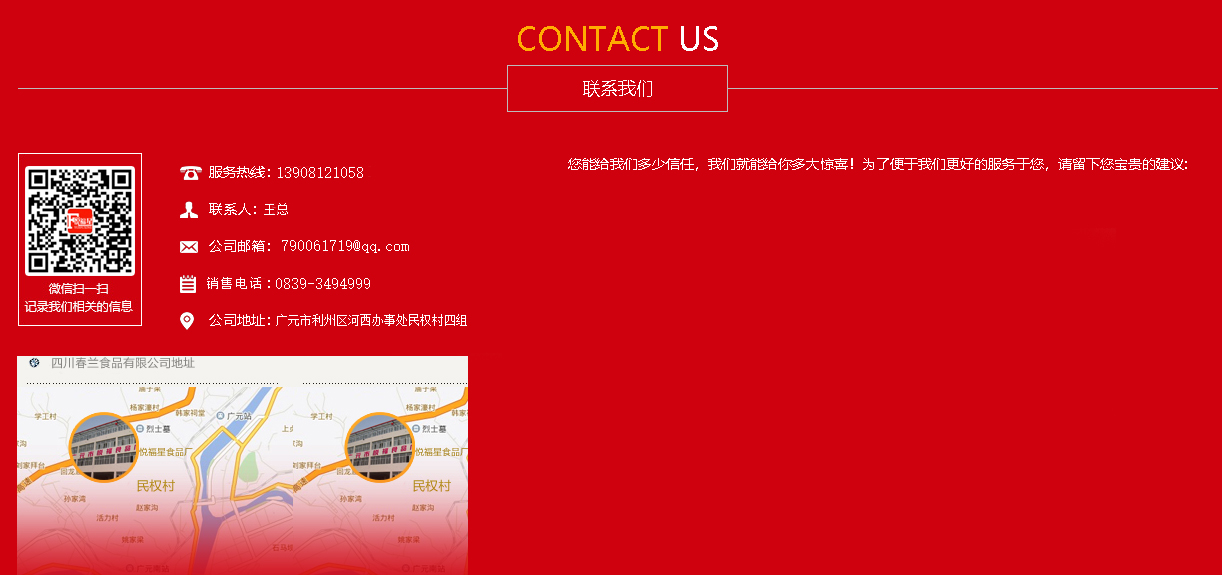 四川春蘭食品有限公司成立于2015年1月,主要從事生產天然曬干面、富硒沖調食品、富硒大米、富硒白酒等產品生產加工銷售企業。是以多元化、組合式發展為一體的綜合性企業。公司占地面積15余畝,注冊資金2000萬元,建有6000平方米標準廠房,擁有兩條全自動掛面生產線,一條沖調食品生產線,現有員工35人,專業技術及質量管理人員6人,具有年產1.5萬噸中高檔系列掛面、50噸富硒沖調食品和20噸富硒白酒的生產能力,年產值達八千萬元左右。公司研發生產的富硒掛面系列(富硒掛面、富硒香菇面、富硒苦蕎面、富硒粗纖維掛面、富硒綠豆面、富硒平菇面)以及普通曬干面為依托,公司注冊商標“悅福星”以地道的“農家味道”和“天然曬干”的特點,產品深受消費者厚愛。公司堅持以“質量促品牌,品牌促發展”的經營理念,加強品牌建設,提升質量管理,使企業在食品質量安全方面有了很大的提高,在今后的發展中不斷提升市場的競爭力。 ...... 更多